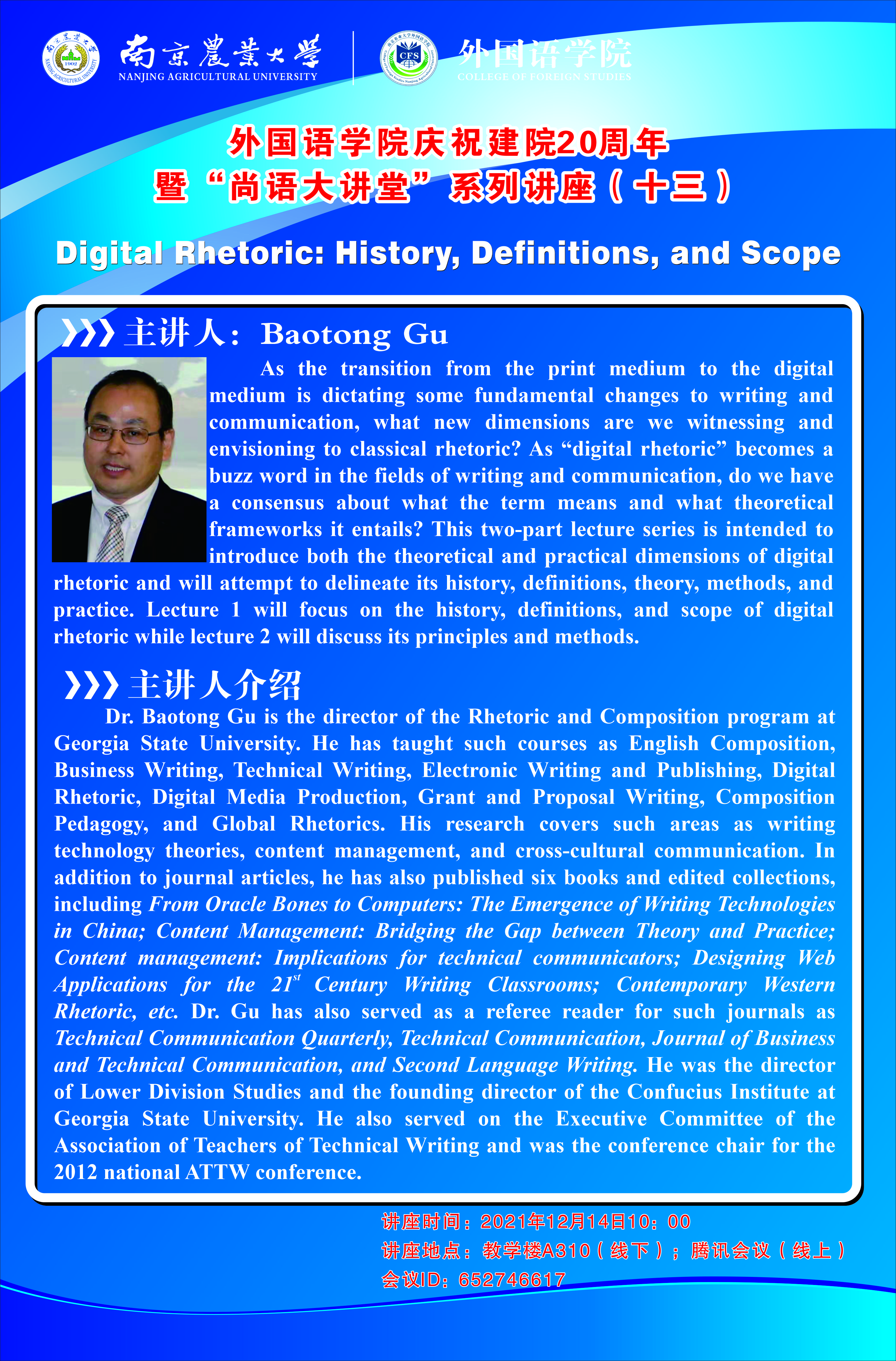 上一篇:“尚语大讲堂”系列讲座(十四)Digital Rhetoric:Principles and Methods