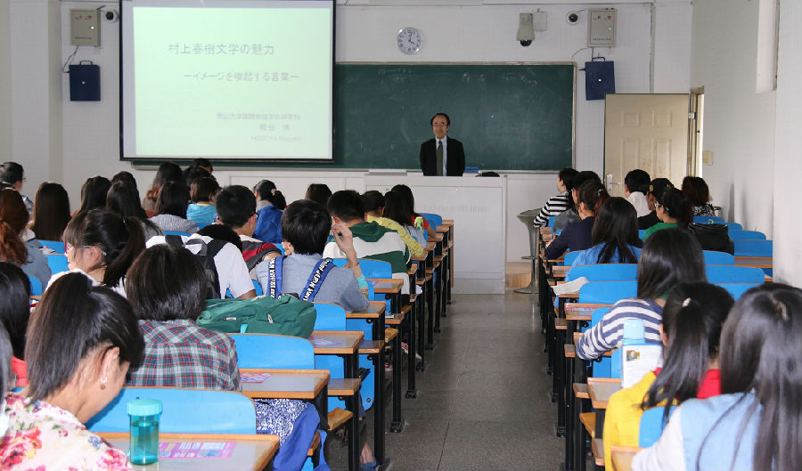 全体师生带来了一场精彩的学术讲座。他介绍了日语作家村上春树作品的思想和内涵。讲座由日语系金锦珠老师主持。