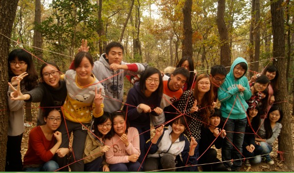 当日上午7时许,学生干部们在大学生活动中心集合,精神抖擞地向中山陵素质拓展基地进发。由于大部分同学都是首次参与此类训练,教练员安排了偏向思维活动和考验团队协作能力的训练计划。首先第一课就是“破冰建设”。通过几个简单的小游戏,同学们建立了团队,消除了紧张感,以轻松愉快的心情投入到接下来的训练中。紧接着的项目就是“信任背摔”。从1.5米高的高台直挺挺倒下,并落在高台下同伴们用手臂搭建起的支架上似乎是一件难以完成的任务。特别是女同学们,站在高台边缘时,仍是难以鼓足勇气往后倒。高台下的同伴们高喊着“时刻准备着”、“来吧,亲爱的”鼓励她们。当稳稳当当地跌入高台下同伴们的臂弯中,一颗悬着心终于安定下来,当挨个与同伴击掌表示感谢时,心里又油然生出一种感动,身在这集体中真好。