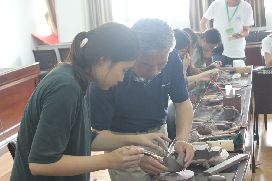 开展了以紫砂陶艺和太极拳为主题的中华文化研习活动,来自韩国庆北大学、江原大学、首尔大学参加2015 Global Summer School的三所高校的21名交流学生及带队老师参与了此次研习活动。